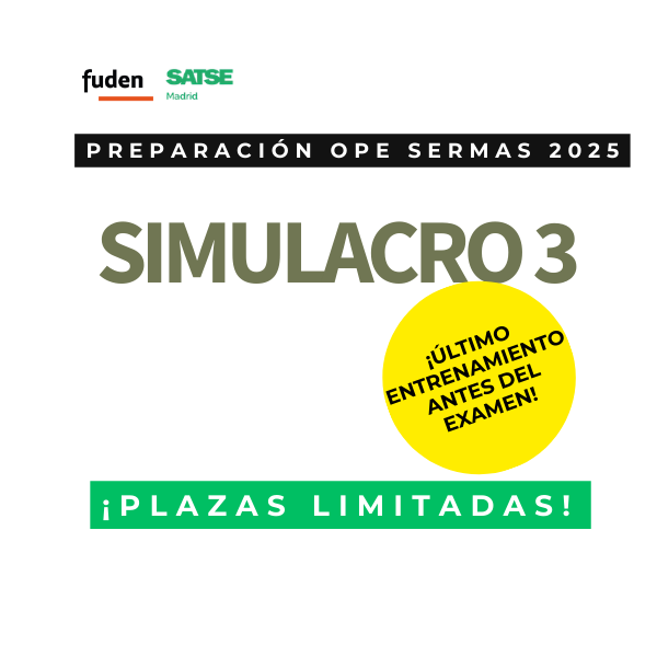 Estás ya en la fase final del estudio por eso es clave el entrenamiento. Te ofrecemos un simulacro presencial con las mismas condiciones, tiempo y normativa que tendrás en la oposición oficial del SERMAS 2025. Una oportunidad única para ponerte a prueba, medir tu nivel y entrenar tu estrategia antes del gran día.