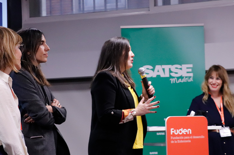 Y una vez cumplida la tradición, dábamos paso a la primera mesa de la jornada: ‘Proyectos de mejora: impulsando la transformación de los entornos sanitarios’. Moderada por Pilar Arribas, hemos tenido la oportunidad de conocer los mejores trabajos de la VII edición del experto. La primera encargada de exponer ha sido Ana Pasalodos Sanguino, enfermera y delegada sindical de SATSE Madrid.