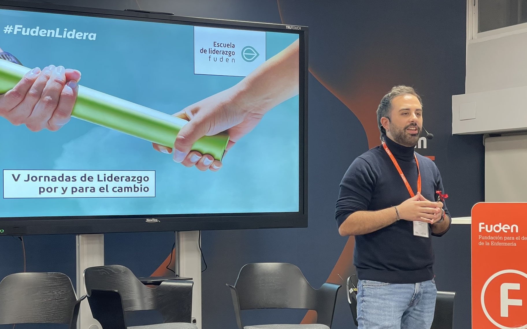 Marcos Rojas (actual director de la Escuela de Postgrados Universitarios de Fuden) tranquilizó a las y los alumnos asegurando que, aunque pueda dar vértigo, la experiencia merece la pena: “Lo vais a disfrutar. Es exigente, hay que organizarse, pero os van a dar muchas facilidades porque sabemos la vida que llevamos los enfermeros”. Rocío Álvarez hizo un guiño al conocido programa de baile ‘Fama’ y advirtió, entre risas: “aquí es donde vais a empezar a sudar para ser futuros líderes”. En la misma línea, Pilar Arribas destacó que el valor diferencial de la formación es que no solo enseña a liderar desde la gestión, sino desde la mirada interior, y Marian Cubero animó les animó a no venirse abajo: “es muy satisfactorio, aunque hay que trabajar”.