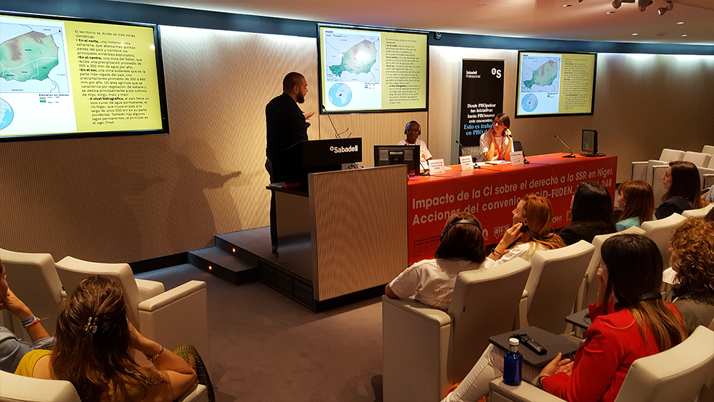Ibrahim Amadou Nouhou, administrador del convenio AECID-FUDEN, ha desglosado, a lo largo de un interesante pase fotográfico qué actividades se han realizado en Níger durante estos 4 años de colaboración, y quién ha participado en las diferentes acciones y con qué objetivo. Su participación se ha desarrollado bajo el título “Derecho a la Salud Sexual y Reproductiva en la Región de Maradí, a través del fortalecimiento del Sistema Sanitario Público y la participación comunitaria”.