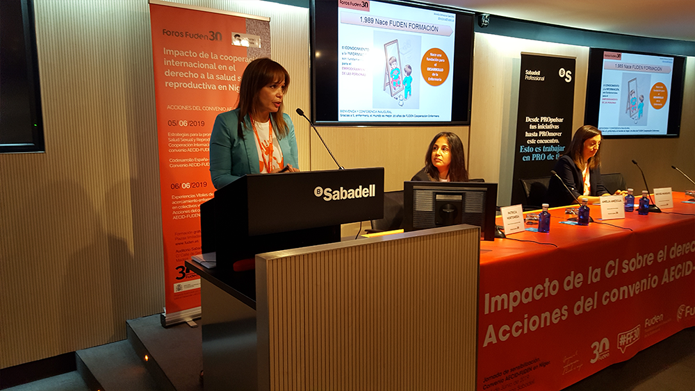 La cooperación enfermera internacional y el derecho a la salud sexual y reproductiva en Níger ha sido el eje del Foro FUDEN 30 aniversario que hemos celebrado el 5 y 6 de junio en el auditorio Sabadell de Madrid. Más de 100 enfermeras han asistido a este enriquecedor encuentro de dos días de duración, centrado en los resultados del convenio que la Fundación para el Desarrollo de la Enfermería, FUDEN, y la Agencia Española de Cooperación Internacional para el Desarrollo, AECID, mantienen en Níger desde hace más de 4 años. El objetivo general de esta colaboración es mejorar el conocimiento sobre los riesgos asociados al matrimonio precoz y promocionar la participación y la implicación de la población, en especial de padres, madres, jefes religiosos y líderes comunitarios para combatir el fenómeno del matrimonio infantil con la finalidad de mejorar la salud reproductiva de la mujer y, en concreto, de las niñas.
