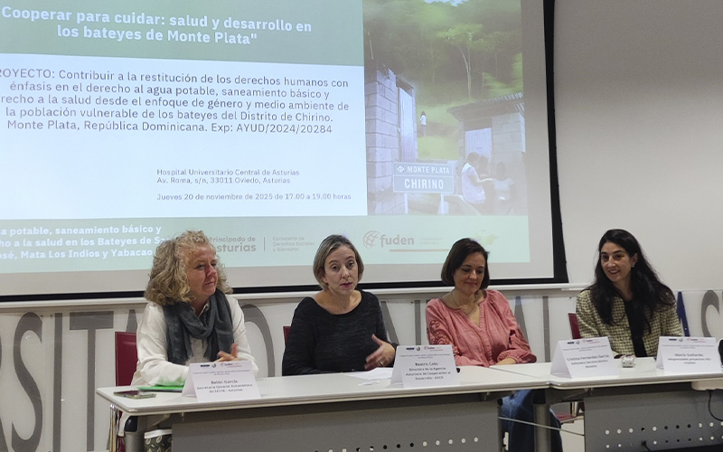 El 20 de noviembre de 2025, el Hospital Universitario Central de Asturias (HUCA) acogió la jornada “Cooperar para cuidar: salud y desarrollo en los bateyes de Monte Plata”, organizada por Fuden con la colaboración de la Agencia Asturiana de Cooperación al Desarrollo (AACD). El encuentro puso el broche final al proyecto de Fuden “Contribuir a la restitución de los derechos humanos con énfasis en el derecho al agua potable, saneamiento básico y derecho a la salud desde el enfoque de género y medio ambiente de la población vulnerable de los bateyes del Distrito Chirino, Monte Plata, República Dominicana”, financiado por la AACD.
