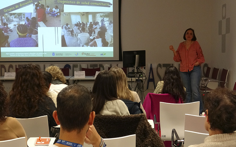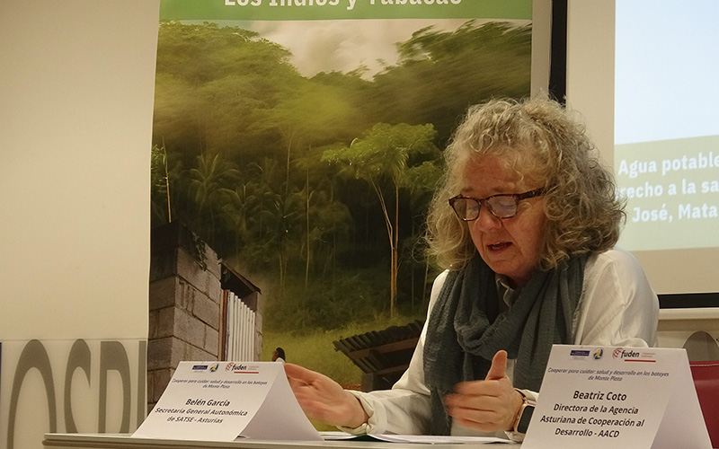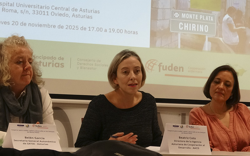 Por su parte, Beatriz Coto subrayó la relevancia de la continuidad en los proyectos: “Es importante mantener la intervención en el tiempo por el impacto real que genera en las comunidades, más aún en un momento marcado por los recortes en ayuda internacional”. Coto resaltó el impacto acumulado tras seis años de trabajo conjunto en los bateyes de Monte Plata, donde la continuidad y el seguimiento han permitido transformar realidades en contextos donde los derechos al agua, al saneamiento y a la salud siguen siendo vulnerados. Recordó además que la cooperación afronta una reducción presupuestaria de hasta un 40%, lo que hace aún más valioso mantener estas líneas de actuación. También reivindicó el papel central de la enfermería en la cooperación internacional ya que “en muchas comunidades, la enfermería es el primer contacto con profesionales sanitarios. En 2025, nuestro apoyo ha alcanzado a más de 5.000 personas, un 52% mujeres”. Asimismo, agradeció la colaboración de Fuden con el programa Juventud Asturiana Cooperante, que acerca cada año a jóvenes enfermeras a la realidad de los bateyes.