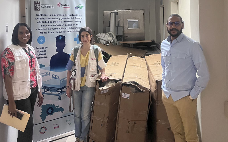 La Fundación para el Desarrollo de la Enfermería, Fuden, realizó este 3 de noviembre un acto de socialización y entrega oficial de equipamiento médico al Hospital Doctor Ángel Contreras, una iniciativa destinada a fortalecer la capacidad de respuesta del principal centro sanitario de tercer nivel de la provincia de Monte Plata. La acción forma parte del proyecto de Fuden “Contribuir a la promoción, restitución de Derechos Humanos y garantía del Derecho a la Salud de mujeres, hombres, niñas y niños con énfasis en población en situación de vulnerabilidad del municipio Monte Plata”, financiado por el Ayuntamiento de Cáceres dentro de su convocatoria 2025. El equipamiento entregado incluye camas hospitalarias, monitores de signos vitales, carros de paro, pies de suero y mesa de Mayo.