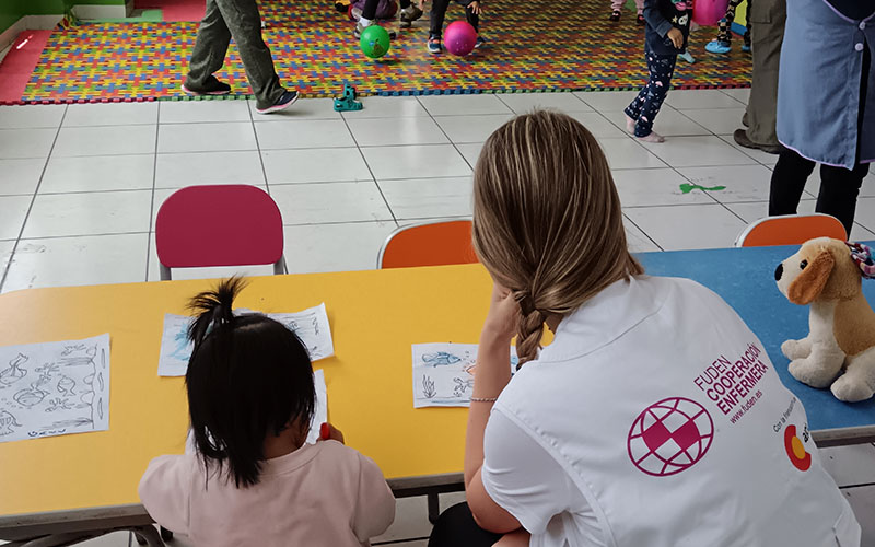 María Martínez, una de las becadas, destaca que “fue en el adulto mayor en quien pusimos nuestro foco de atención, priorizando paliar su aislamiento social y la soledad percibida”. Para trabajar con este colectivo, realizaron visitas domiciliarias y entrevistas directas con personas mayores. Además, las participantes se adentraron en la realidad de las ollas comunes y las cunas parroquiales gracias a Rocío Bustamante, coordinadora de Fuden en el país.
