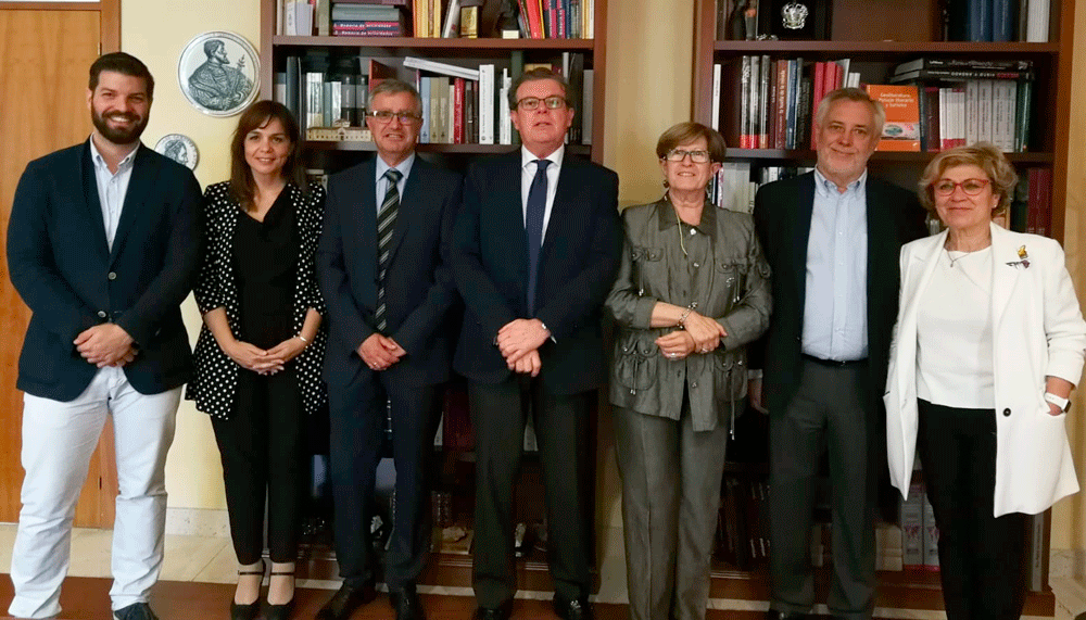 Los miembros de la Cátedra para el Desarrollo de la Práctica Avanzada que la Fundación para el Desarrollo de la Enfermería, FUDEN, mantiene con la Universidad de Castilla La Mancha, UCLM, han mantenido una reunión con el rector de esta universidad Miguel Ángel Collado, para presentarle los logros alcanzados a lo largo del pasado año y concretar los proyectos futuros que se desarrollarán a lo largo de 2018. A este encuentro han asistido el presidente de FUDEN, Víctor Aznar, la directora de FUDEN, Amelia Amezcua, el responsable de la Escuela de Postgrados de la Fundación, Marcos Rojas, la directora de la Cátedra FUDEN – UCLM y decana de la Facultad de Enfermería de la UCLM, Mª del Carmen Prado, el vocal de la Cátedra y decano del Facultad de Enfermería de la UCLM, Ángel López, y la vocal de la Cátedra FUDEN –UCLM y profesora titular de la UCLM, María Dolores Serrano.
