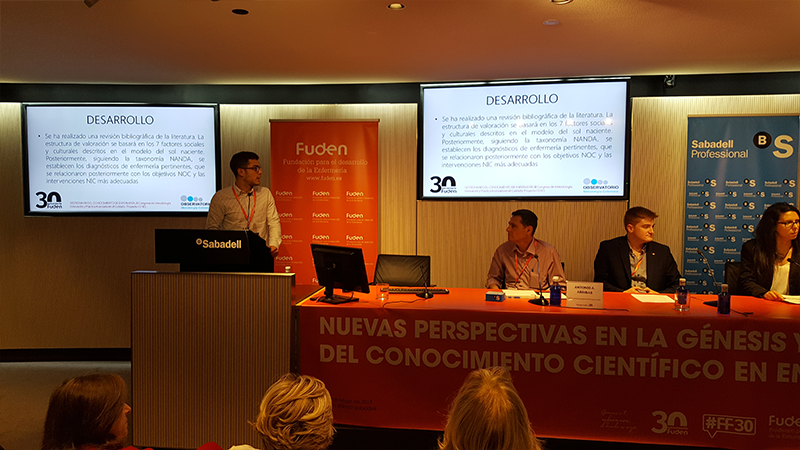EXPOSICIÓN DE COMUNICACIONES ORALES: Experiencias y análisis de la aplicación del conocimiento de enfermería en la práctica. En este espacio se expusieron los trabajos de: