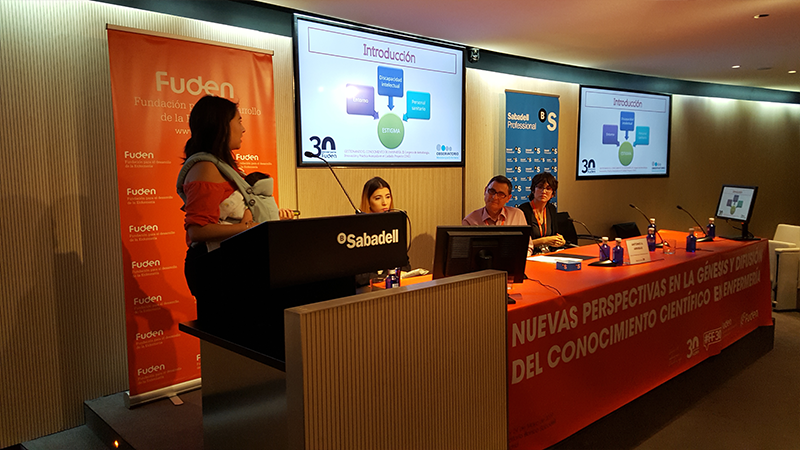Aplicación del conocimiento a la práctica enfermera, fue el título de nuestra tercera mesa de expertos. Amelia Amezcua Sánchez. Enfermera y editora del libro “Cuidados de Enfermería en las personas con Síndrome de Down” fue la encargada de presentar una novedosa publicación. «Las enfermeras producimos una gran cantidad de conocimiento no visible, pero es necesario convertirlo en conocimiento tangible, como este libro. Sus contenidos han surgido de la experiencia vital de las autoras, y ha sido validada por familias con un familiar con síndrome de down. Uno de los objetivos de este libro es hacer competentes en cuidados a las familias».