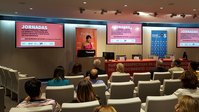 La Directora de la Revista NURE, Ana Belén Salamanca, fue la maestra de ceremonias de la Jornadas nuevas perspectivas en la génesis y difusión del conocimiento científico en enfermería. Durante su presentación destacó que “las enfermeras tenemos mucho conocimiento tácito y sin embargo lo hacemos poco explícito” por lo que jornadas como en este ámbito son imprescindibles.