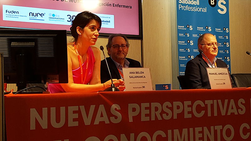 Manuel Amezcua, destacó a lo largo de sus intervenciones que «la disciplina enfermera es un fruto de una evolución: la del conocimiento enfermero». Respecto a la publicación nacional e internacional señaló que “las enfermeras españolas publicamos fundamentalmente en el idioma en que nos comunicamos con nuestros pacientes”. A lo largo de su participación aportó que “tenemos unas fantásticas enfermeras investigadoras, pero también tenemos problemas de plagio, de copia-pega, churriposter y debemos abordarlo los editores”. Refiriéndose al estado actual de las publicaciones inevestigadoras aportó que «todo lo que compete a la publicación científica está en crisis. No es cuestión de futuro. Es ahora”.