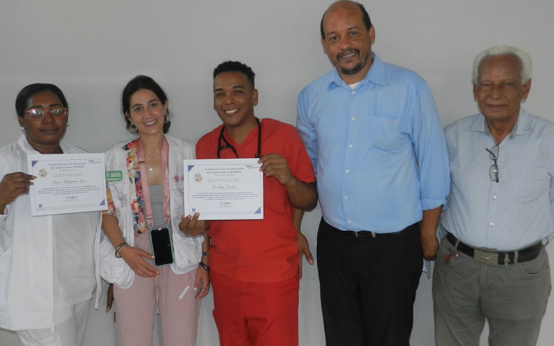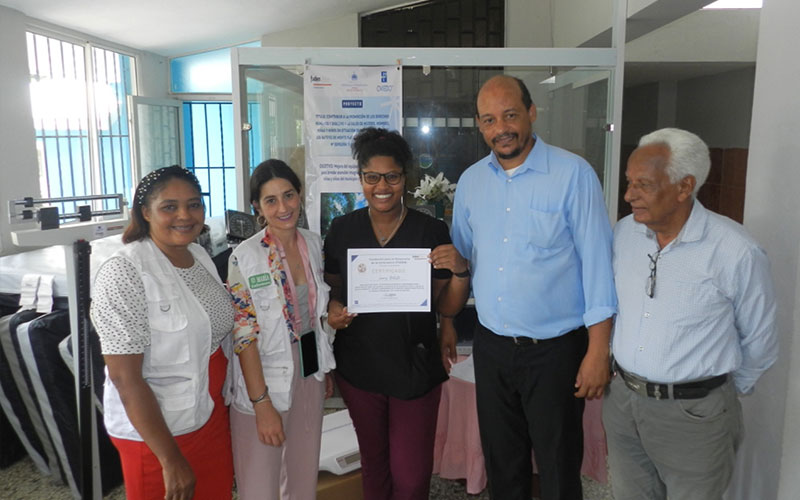 Al finalizar este acto se ha realizado la entrega de Certificados a los profesionales sanitarios formados en los dos Talleres celebrados la semana anterior dentro de este mismo proyecto “Contribuir a la promoción de los Derechos Humanos y Derecho a la Salud de mujeres, hombres, niñas y niños en situación de extrema pobreza de los bateyes de Monte Plata, República Dominicana”. . También se ha procedido a la firma de las actas de donación del material transferido.