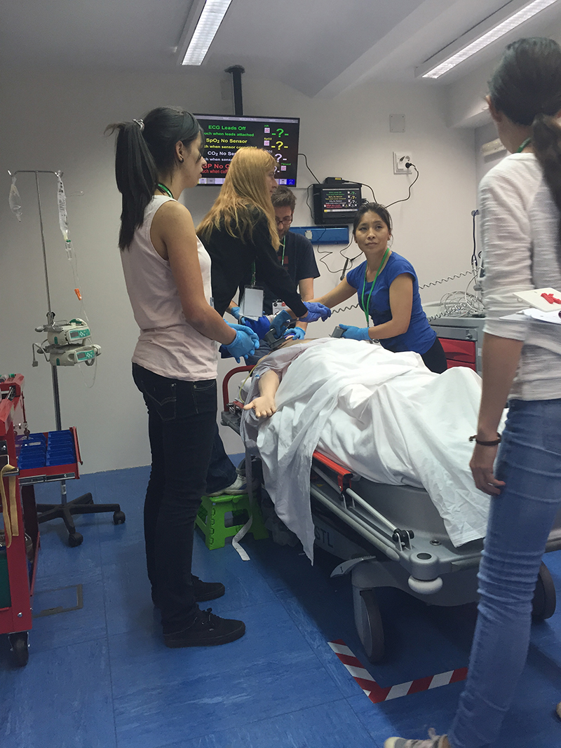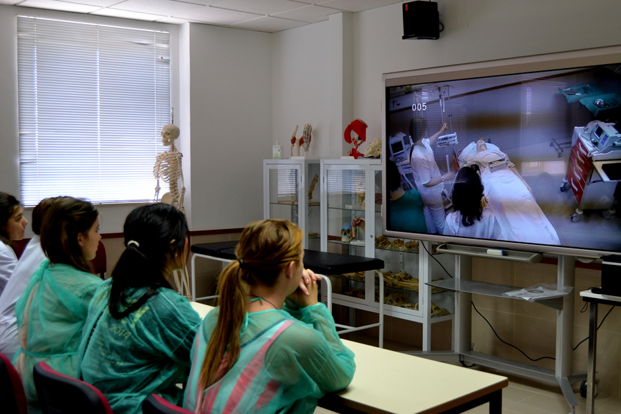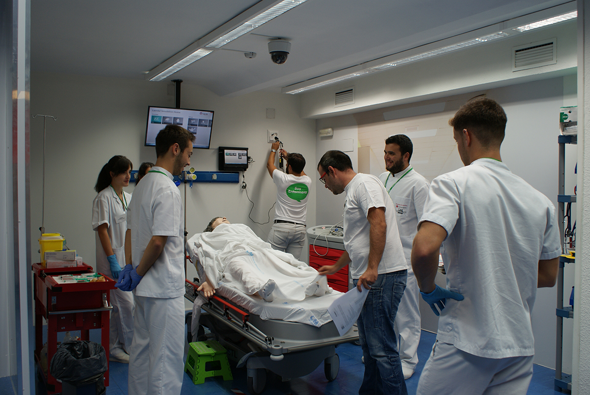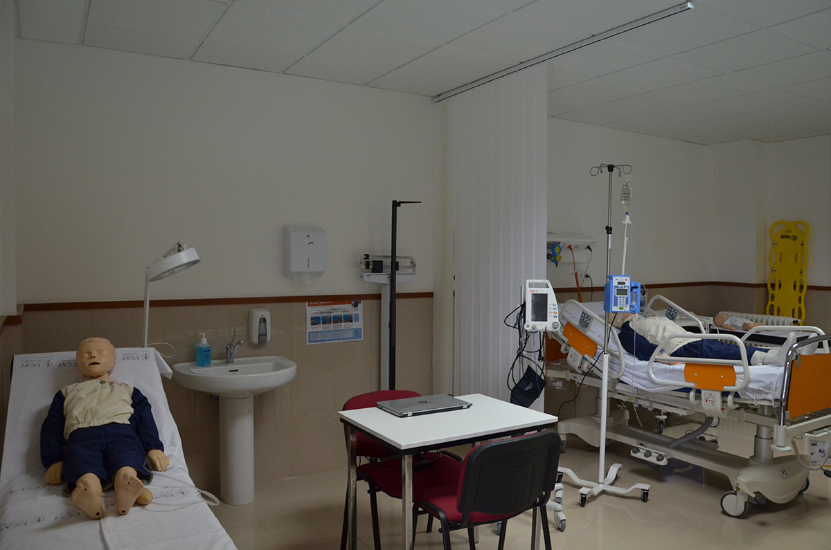 La parte práctica tiene lugar en aulas de simulación clínica. Se trata de aulas en las que se han recreado espacios en donde los enfermeros se enfrentan a este tipo de situaciones, como un box de urgencia o una UVI móvil, que cuentan con maniquíes de alta fidelidad y con el aparataje necesario para afrontar situaciones comunes o extremas. En este espacio se plantean todo tipo de casos para afianzar los contenidos teóricos y practicar las habilidades en equipo.