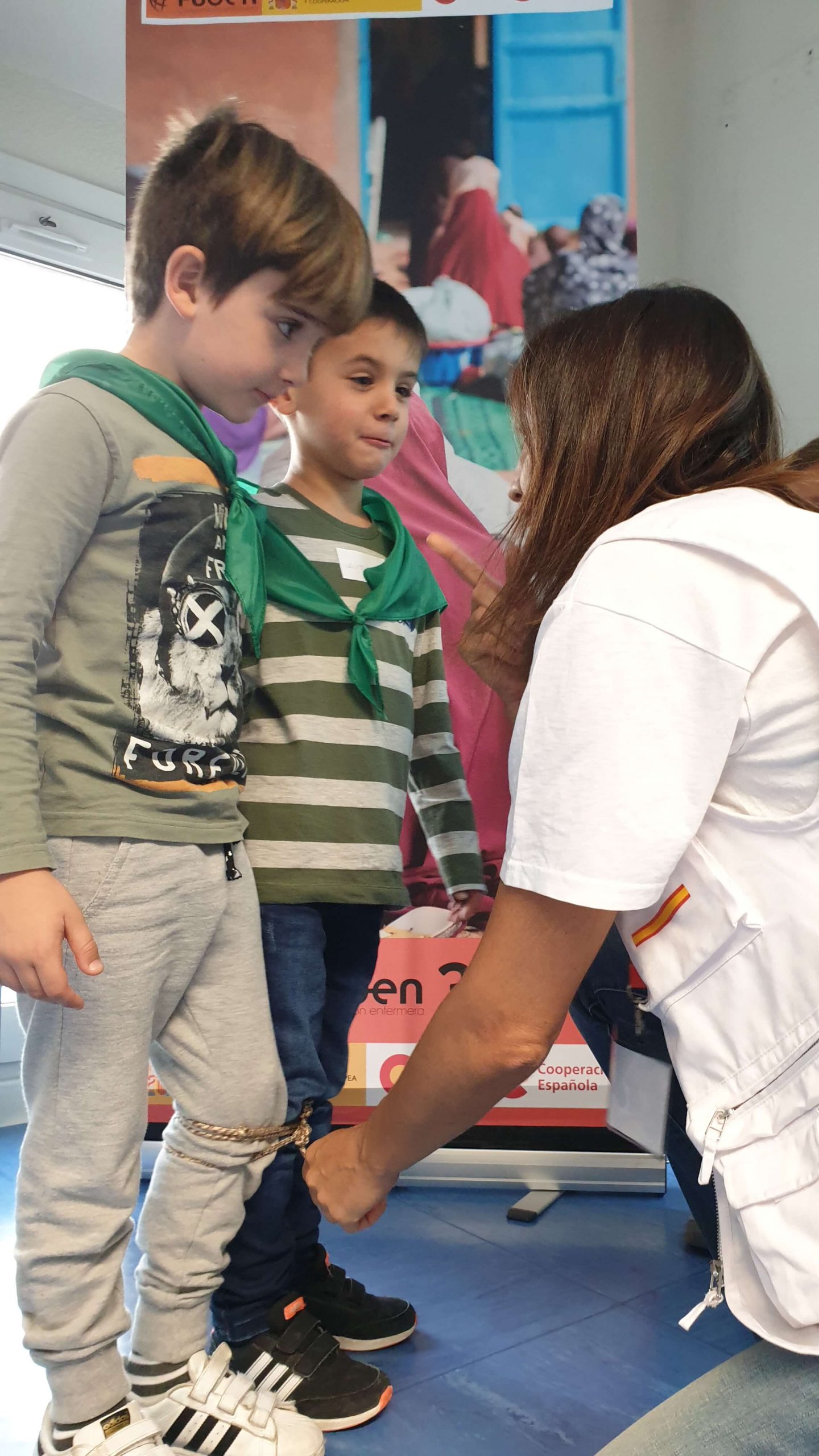 Colegios de la Comunidad de Madrid, la Asociación ICEAS y otros niños y niñas en compañía de sus padres, se han trasladado hasta Cuesta de Santo Domingo 20, para ser partícipes, por primera vez, de los distintos talleres que Fuden ha preparado para ellos, relacionados con los Objetivos de Desarrollo Sostenibles de las Naciones Unidas; cinco talleres en los que la enfermera les mostraba los materiales que utiliza en urgencias y emergencias, les enseñaba a colocar vendajes y collarines de manera colaborativa para rescatar a un herido, les educaba en higiene de lavado de manos y transmisión de enfermedades, el funcionamientos de nuestro cuerpo y cómo medir las constantes vitales o les implicaba, a través de la matrona, en la delicada y emocionante tarea del nacimiento de un bebé.
